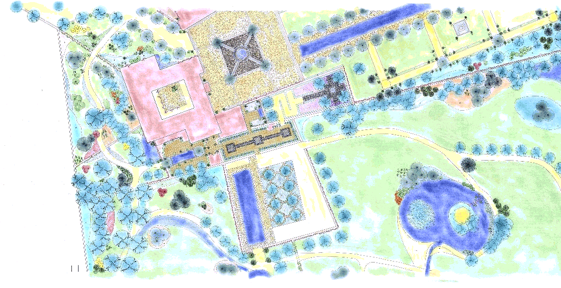 - determining a location for terraces, swimming pools, paths, roads, walkways and buildings